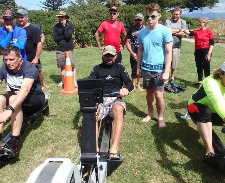 As thought, racing events were done adhoc, but in the end, we all had great fun, the weather was kind and everyone mixed in and gave their best. Prizes were won, free coffee drunk, sausages eaten and competition went into to overload, especially on the rowing ergs. Members of the CoastGuard and Tasman & Nelson Harbour Masters were introduced to waka ama, as were senior member of the Rowing club.