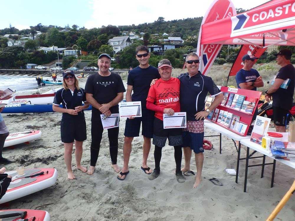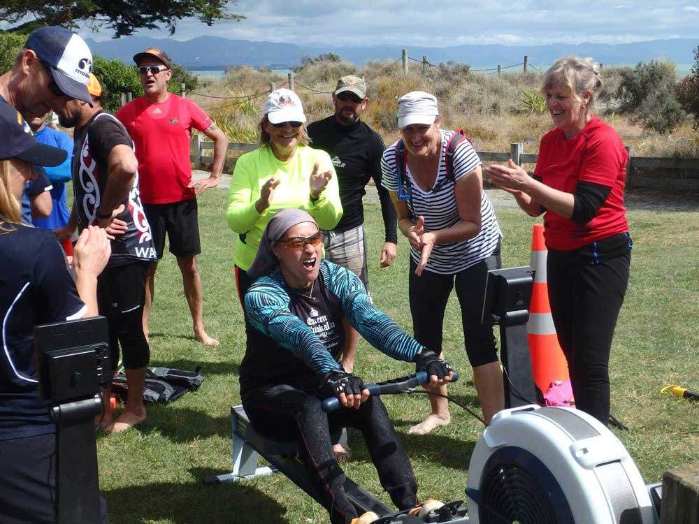 The assistant Harbour Masters raced with some of the Maitahi crew helping them out. Josh’s waka won much to his delight. Plenty of spot prizes were given (dry bags, radios, vhf radio courses etc). The Personal Locator Beacon winner was decided in a full on race on the rowing machines with teams of 4 was won by the Maitahi men.